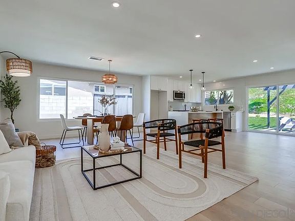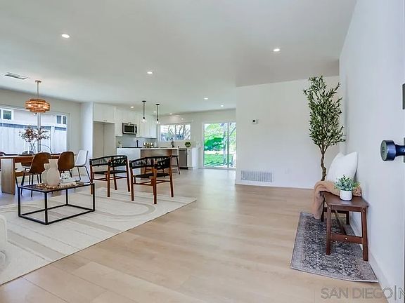 Welcome home to this spacious 4 bed 2 bath open concept family home on a large lot in Poway! This light and bright home features a great room with open concept kitchen with island, bar seating, all wood cabinets, quartz counters, SS appliances and designer fixtures. You will love the large windows throughout that open to the backyard and flood the home with natural light. Additional features include new dual pained windows, new laminate wood floors, large en-suite primary with his and hers closets, LED lighting, low flow plumbing fixtures, and designer tile. The large backyard with pergola, porch, separate paver patio, and large side yard with room for toys make this a home you don't want to miss! And all in the Poway school district!