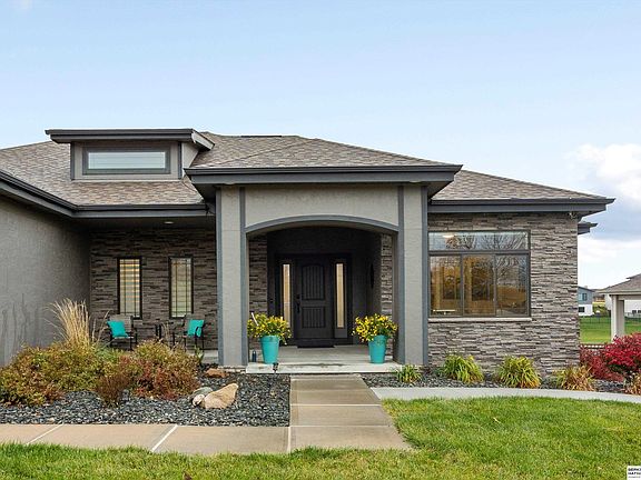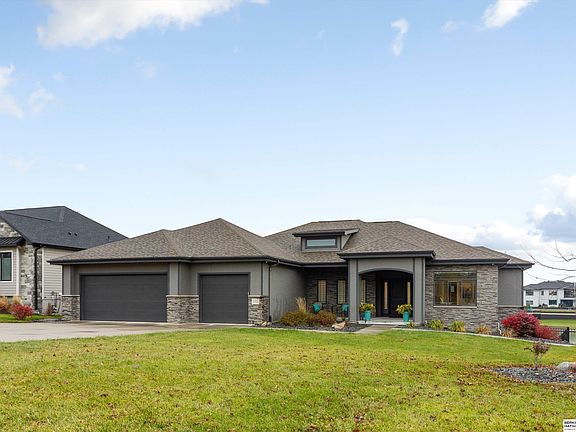 Experience unparalleled luxury in this custom built lakefront home.  No expense has been spared! This exquisite ranch-style property is a Geothermal home, delivering impressively low utility costs year round. The open-concept design is bathed in natural light, enhancing the seamless flow of every meticulously crafted space.  Outdoors, a private oasis awaits, featuring a putting green, a resort style pool, and a relaxing in ground hot tub, all surrounded by immaculate landscaping and sophisticated lighting that illuminates the home's architectural accents.  The gourmet kitchen is a chef's dream, complete with top-tier appliances and a spacious walk in pantry.  The primary suite offers a peaceful retreat, with dual vanities, an expansive walk-in closet, and a cozy ambiance perfect for relaxation.  With direct lake access and stunning views, this home is an entertainer's paradise--perfect for both intimate gatherings and grand celebrations.
