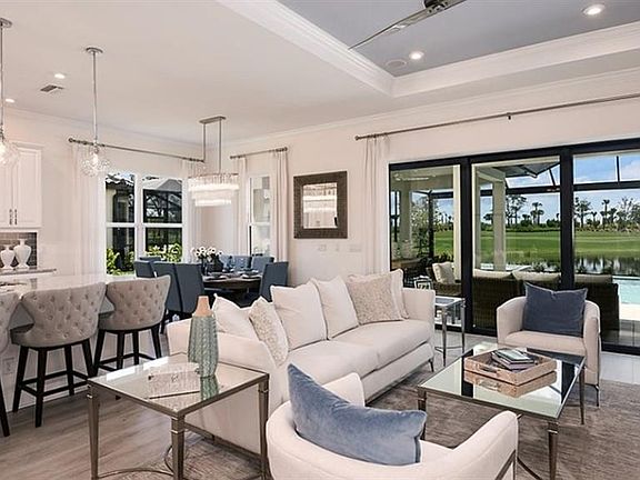 What's Special: Deep Lot | Covered Extended Lanai | Single Level Living. New Construction – April Completion! Built by America’s Most Trusted Homebuilder. Welcome to the Farnese at 12701 Bellissimo Court in Esplanade Lake Club! This home blends elegance and ease with an open-concept layout perfect for everyday living and entertaining. A stunning designer kitchen with a spacious island overlooks the great room and casual dining area, while a separate formal dining room adds a touch of sophistication. Step out to the lanai from the great room and unwind as you take in the Gulf Coast’s breathtaking sunsets. At the front of the home, two secondary bedrooms each feature private baths, with a nearby laundry room for added convenience. The tucked-away primary suite offers a spa-like retreat with a luxurious bath and generous walk-in closet. Additional Highlights Include: Tray ceiling at great room/primary suite/formal dining, bedroom 3 with bath 3 in place of flex, pocket sliding glass door at great room, tandem garage, gourmet kitchen, 8' interior doors, covered outdoor living, and outdoor kitchen rough-in only. Photos are for representative purposes only. MLS#225080306 Your dream home is waiting at Esplanade Lake Club, a stunning lakeside community in Fort Myers, Florida. This community blends resort-style living with endless opportunities for fun and relaxation, all set against the sparkling backdrop of Lake Como—a boater’s paradise. Take a leisurely stroll along the waterfront trail or soak in the views from the floating pier. Lounge on the beach, launch your kayak, or set sail from the community dock for an adventure on the water. The community is designed to inspire an active, vibrant lifestyle. Amenities include a resort-style pool, the Bahama Bar and Grill for casual dining, a spa room for massages, and sports courts for tennis, pickleball, and bocce ball. Residents can enjoy pet parks, paddleboard and kayak launches, and versatile spaces for gatherings, gaming, and events. Come explore this amazing community today, where every day feel like a vacation!