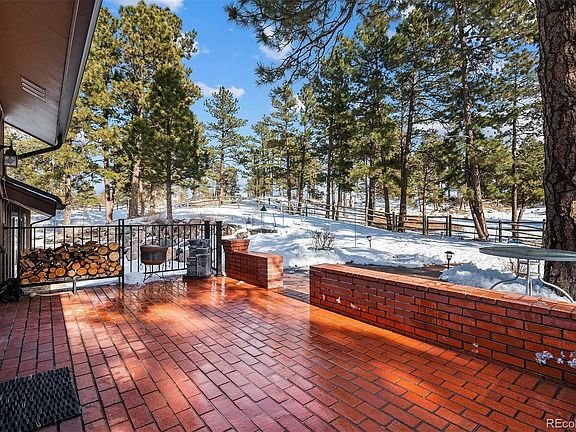 Country living but oh, so close in! 3.795 acres of Mature Trees, Privacy and Mountain Views! Follow the flagstone walkway through the perennial garden up to the new custom front door. Inside you will find a great room, an open kitchen and the dining area plus an additional living room. The expansive 2 wood burning moss rock fireplaces keep you warm and cozy on snowy Colorado days. The kitchen has slab granite countertops, soft close 42-inch cabinets, double ovens, Thermador gas stove, extra desk area and access to the deck. The spacious and sunlit south/west facing covered deck is perfect for morning coffee or extra entertaining outdoor space. The master suite has double vessel sinks and a walk-in shower with body jet and rain shower head. The two secondary bedrooms are served by a full bath with heated floors, knotty alder cabinets, dual sinks, and granite countertops. The basement has a mudroom that doubles as a laundry room with built-in cabinets, sink, and crawl space for add'l storage! The 4th bedroom can easily be used as an office, craft or flex space. Bonus Feature: DETACHED 864 sq.ft. GARAGE/SHOP and RV Parking. Additional features include; water feature, sprinklers, and drip irrigation, 2012 gas boiler, and hot water heater, double and triple pane windows, sola-tube skylights, added insulation, brick paver patio, raised garden beds, fenced area, asphalt driveway, and Morgan shed and so much more. Bring your chickens, the coop is ready and enclosed including an area to roam. This is Country living at its best yet 6 minutes to downtown Parker with all amenities, and minutes to E-470. Nestled in the trees, it's ready for you to make it your own.