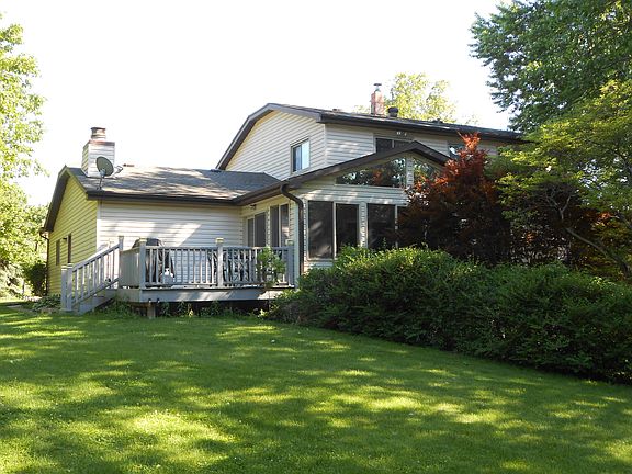It is a beautiful open concept 2-story home on a corner lot. Inside there is a newly remodeled kitchen with quartz countertops, soft close hickory cabinets, and a large pantry. On this first floor there is also a formal dining area, a sitting room, a living room with a fireplace, a three season sun-room, and a powder room. Upstairs there are four bedrooms, 3 of which have walk-in closets. The master bedroom has an on suite bathroom and down the hall is also a full bathroom with custom tile and a laundry chute. In the fully finished walkout basement there is an office, a work-out room, laundry room, fruit room, living room with a wood buring stove and full bathroom. This home is 1.99 acres, surrounded by gorgeous full grown pines with a total of more than 200 trees. Some of these include apple, pear, plum, asian pear, mulberry, oak, maple, redbud, and dogwood. There is also a large shed for storage or a workshop, and a kids play area.