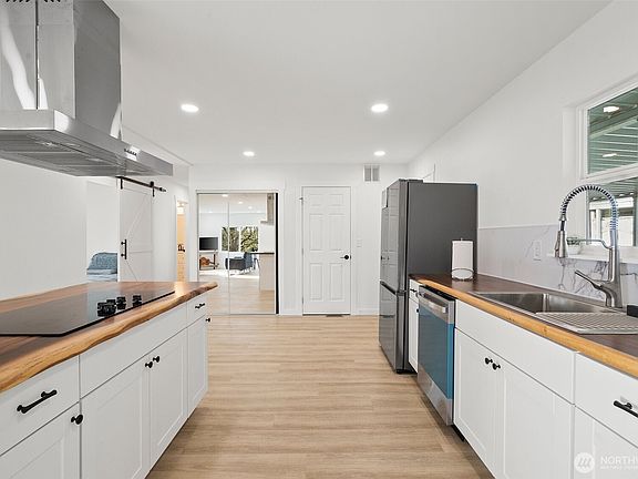 Welcome home to this beautifully updated 3-bed, 2-bath home with 1440 sq ft, situated on a 4997 sq ft lot. Almost everything is NEW! Step inside to an open floor plan featuring a spacious living room bathed in natural light (sunset views)! The stunning kitchen boasts brand-new white shaker cabinets, live edge countertops, SS appliances, a double oven, and more. New waterproof LVP flooring throughout. The large master suite includes a luxurious ensuite bathroom. New paint inside & out, and brand-new heat pump for year-round comfort. HOA fee $25/month. 5 min to UW/Bothell, 7 min to Costco, and 2-3 min to I-405 and I-520. Move-in ready! THIS HOME IS FINANCEABLE! PREFERED LENDER can go as low as $0 down (contact info in agent remarks)!