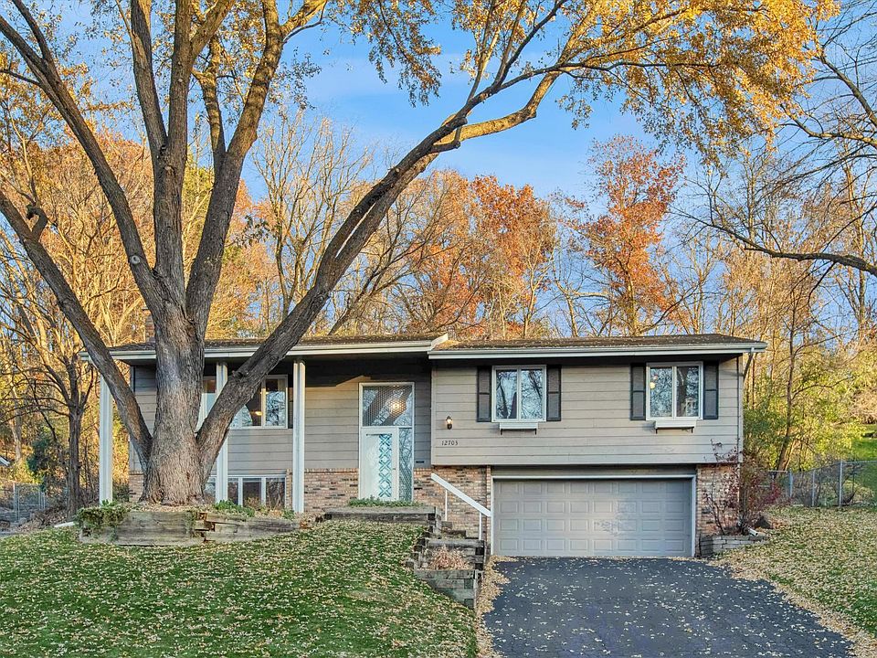 Well-kept 1970s Burnsville classic with timeless mid-century charm! This split-foyer home sits on a mature lot accented by stately front pillars and great curb appeal. The bright, functional layout maximizes living space with a primary suite featuring a private ¾ bath, plus two additional bedrooms, a full bath, eat-in kitchen, formal dining room, and cozy living room with fireplace—all on one level. The lower level offers a large family/entertainment area, storage, and a flexible bonus room. New carpet (2020). The convenient tuck-under garage keeps vehicles warm through Minnesota winters. Step outside through the kitchen slider to enjoy a beautiful new paver patio and private backyard. A large shed with power and a wood stove is perfect for projects or hobbies, and an additional shed—originally built as a kids’ fort—adds bonus storage or could serve as a chicken coop. This inviting home is ready for you to make it your own!