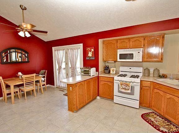 - Kitchen Desc: Cath./Vaulted Ceiling, Balcony/Deck, Window Covering, Ceiling Fans, Dining Area, Pantry, Laminate Flooring, 9'+ Ceiling