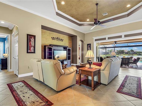 Absolutely STUNNING Barrington Model Pool Home in The Plantation at Somerset! Open the door to the wonderful view. This is a 2 Bedroom-PLUS 2 den/home offices(one with a built in Murphy Bed). Thousands of dollars in upgrades- see full list attached to the MLS. Peaceful golf course & lake view. Great Room design w/ disappearing sliders, split bedroom layout, crown molding, volume & tray ceilings, aquarium window in breakfast nook, custom shelving in closets, plantation shutters, whole home water filter system, and new carpeting in bedrooms. You will love the wonderful outdoor living space that offers a long under truss area, solar & heat pump heated pool/spa, and a huge picture window screen. This home has IMPACT resistant front door, electric shutter on lanai, and accordion shutters for the remaining windows. Garage has a 4' extension. The Plantation at Somerset is a gated community w/ guard at gate that offers tons of amenities such as a resort-style pool, Clubhouse, championship golf course, pickleball, tennis, fitness center, & more. The Plantation is perfectly located near I-75, SWFL Int. Airport, Spring training for Boston Red Sox and Minnesota Twins, shopping & dining.