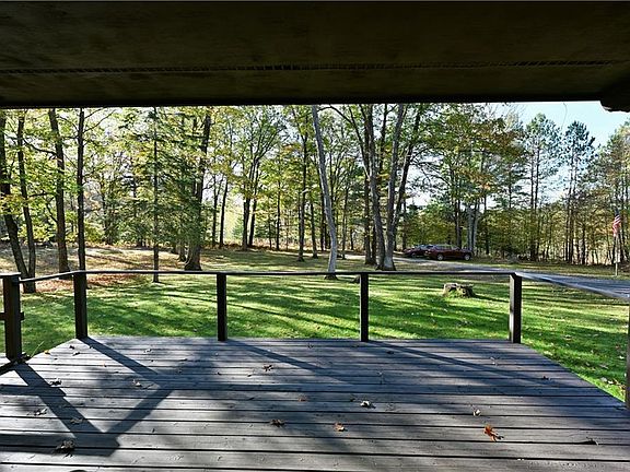 Stunning stone fireplaceScenic walking pathsExpansive wrap-around deck