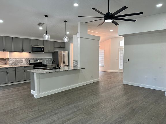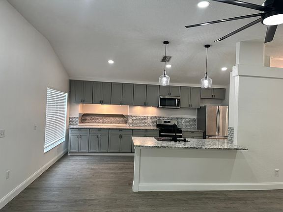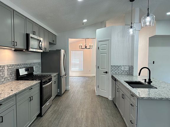 Granite countertopsBeautifully landscaped backyardOpen floor planModern kitchenSpacious layoutOutdoor oasisStainless steel appliances