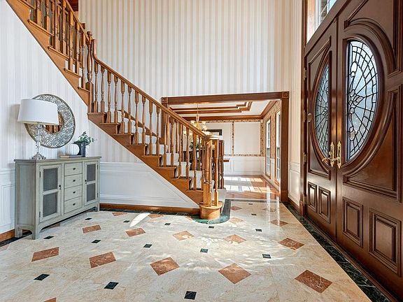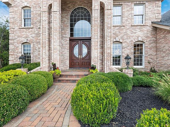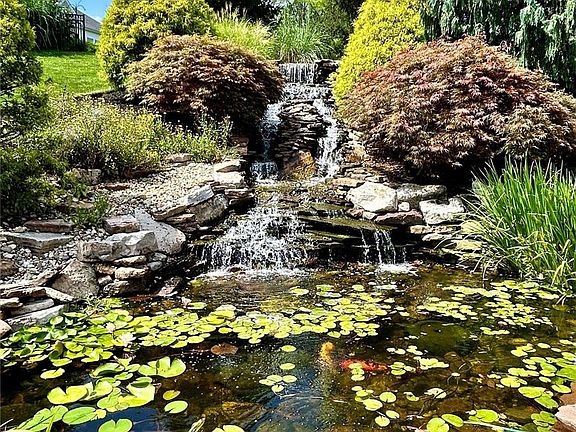 Stunning 5-bedrm offers incredible living w/unparalleled elegance. Youre greeted by views from every window, showcasing serene pool, tranquil waterfall, pond filled w/exotic fish. Formal office, dining rm, & family rm boast exquisite woodwork, setting the stage for an elegant & sophisticated lifestyle. Kitchen true showstopper, flooded w/natural light. Adjacent hearth rm provides cozy space for relaxation. Main flr includes convenient laundry rm, walk-in pantry, primary bedrm w/en-suite bthrm. 2 staircases lead upper level, adding touch of grandeur to home. Master bedrm boasts incredible en-suite bathrm, renovated w/stunning shower & gorgeous closet. Hallway leads to 2 bedrms w/Jack & Jill bathrm & 4th bedrm w/bathrm. Lower lvl incl spacious family area, custom bar, workout rm, & bathrm. Backyard oasis, perfect for escaping & unwinding. Enjoy the soothing sounds of the stream flowing down to the fish-filled pond, this backyard retreat offers the ultimate in relaxation & tranquility.