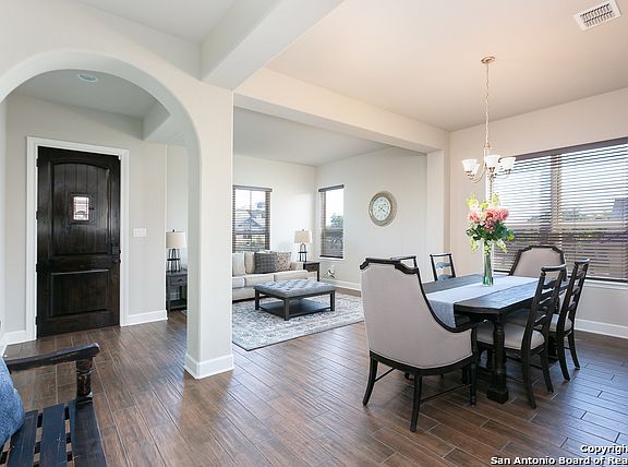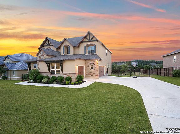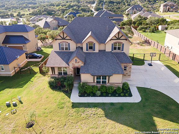 Presenting a beautiful home located in the prestigious and private Helotes Canyon community. Owners in this small community enjoy the beautiful Texas Hill Country with an easy 7 minute commute to the city. The neighborhood borders a protected state park, Government Canyon. This property is on a 3/4 acre lot with side entry to a 3 car finished garage. With traditional sophistication and modern luxury it is an entertainers dream. High efficiency smart house with tons of natural light w/open floor plan & soaring ceilings. Professional gourmet kitchen with smart appliances, convectional oven gas cooking, double stacked cabinets with self closing doors and granite counters with an oversized island and subway tile backsplash. A large butler pantry connects kitchen to dining room and formal living room. The main living area provides comfort for quiet evenings for owners with remote gas fireplace. The Master bedroom offers a scenic backyard view, oversized shower and bathtub, separate vanity and large walk-in closet. Upstairs loft with modern tray ceiling/recessed lighting provides spacious area for lounging and entertaining. 3 additional large bedrooms upstairs with walk-in closets and 2 full bathrooms. The extended covered patio with natural gas connection for outdoor grilling and comfortable seating overlooks serenity blank slate backyard giving owners freedom to create personalized haven for social gatherings with family and friends. This house is equipped with numerous upgrades and conveniences.
