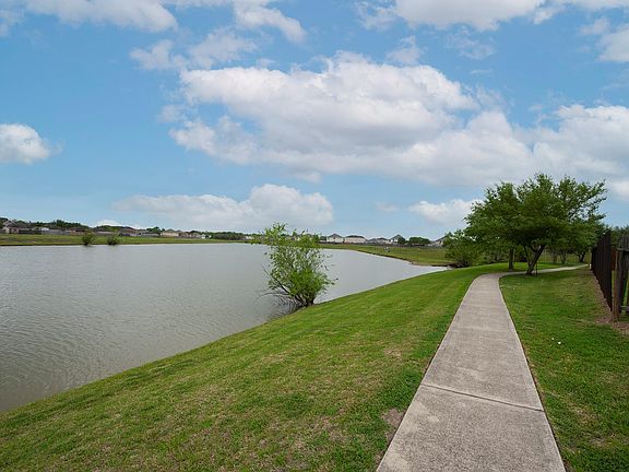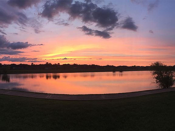 Absolutely charming 3 bedroom, 2 bath home! This is the one! Flooring is LVP (Luxury Vinyl Plank)! Interior arches between living room and the kitchen/dining area! Great natural lighting and 2" blinds on windows. Dining area off kitchen (convenient!) has a sliding glass door that opens to the back patio and offers GREAT VIEWS of the neighborhood lake - WOW! Kitchen with stainless steel range, vent hood, sink and tiled backsplash! Indoor laundry room. Primary bedroom with tray/elevated ceiling! Storage shed and play house (or additional storage shed) stay! Fantastic community amenities!
