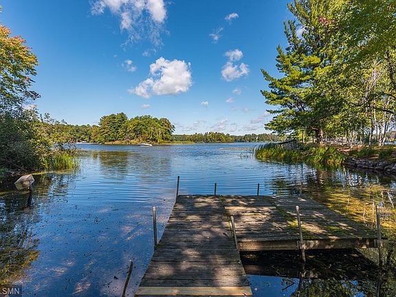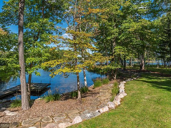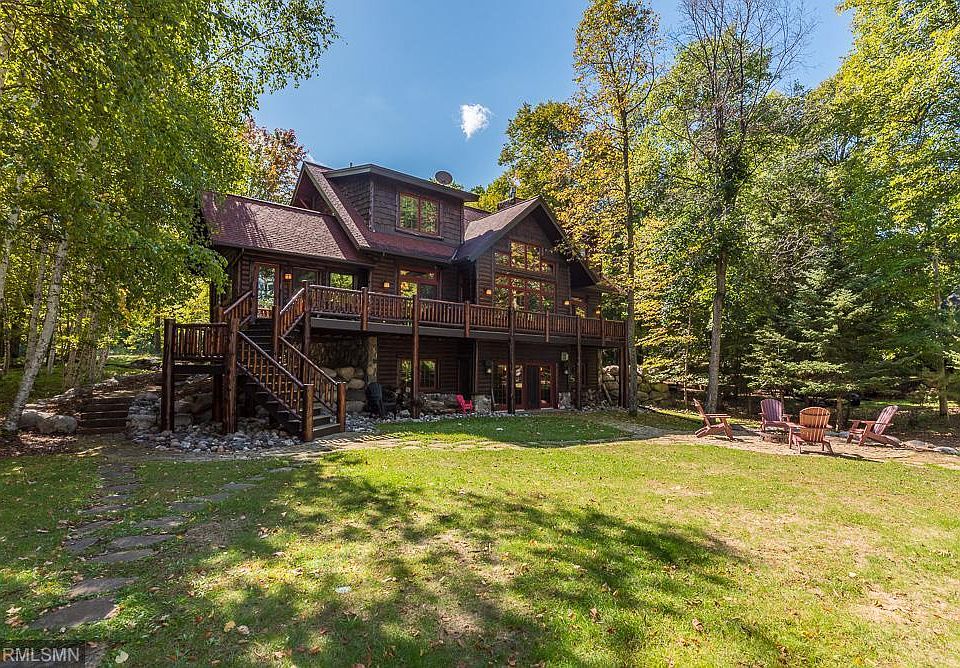 Island lake on the Whitefish Chain of lakes. Beautiful cove setting with over 200’ of level lakeshore offering natural serenity with a fishing dock and around the cove a swimming and boating dock. Quality built by a renowned company in 2004 this home was designed for lake living and features 4 BRs including a main floor bedroom suite, 4 baths, an upper level game room, full walkout lower level with 2 BRs, bar and family room, unique kitchen with stainless steel appliances, pantry, 4 season porch, hickory hardwood floors, granite countertops, hickory cabinets, custom chandeliers, vaulted wood ceilings and wainscoting, 3 FPs including a floor to ceiling stone FP in the great room, log accents and log siding make this a classic lake cabin. Outdoors are tumbled limestone walkways and firepit area, boulder landscaping, mature trees, beach area, a huge lakeside deck for summer dining, an oversized double garage with unfinished living quarters above and so much more.