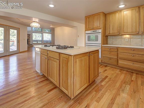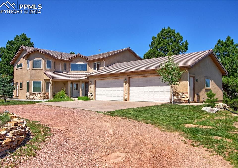 Well maintained, 6-bed, 4-bath custom home boasting  4,848 sq. ft., sits on 37 rolling acres in Larkspur!*  Enjoy NEW CARPET and NEW LVP flooring in the basement! * Step into elegance with beautiful, refinished wood flooring throughout the main level!* *Grand entry w/ dramatic vaulted ceilings.*  Gourmet kitchen area boasting hickory cabinets, Corian countertops, island w/cook-top, large 15x5 walk-in pantry with lots of shelving & double ovens. *Cozy dining nook just off of the kitchen w/ bay window showcasing the tranquil scenery.* Sun filled living area w/ floor-to ceiling windows, stacked stone gas fireplace, recessed lighting & ceiling fan!* Primary bedroom located on the upper level w/vaulted ceilings,  large walk-in closet (with built-ins) and adjoining 5 piece bathroom.* Primary bathroom featuring oversized walk-in shower w/ sitting bench, double vanity w/ tile counter-top & soaking tub overlooking the peaceful, serene setting.* Two additional bedrooms upstairs w/ a full bathroom to share.* Inviting, spacious family area boasting wet bar w/ Corian counter-tops, breakfast bar, recessed lighting, gas fireplace and walk-out to the backyard.* Two additional bedrooms and a 3/4 bathroom complete the basement level.* Highlights  include 15x25 newer wood deck, 21 x15 lower concrete patio, central vacuum and a water feature.* * If you are looking for true Colorado mountain living, look no further!* Great Horse property With large pasture area on the lower lot