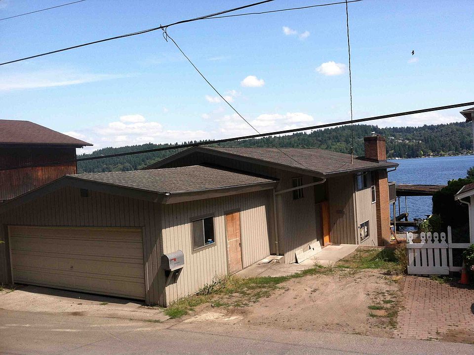 50 feet of prime Lake Washington waterfront. Great open floor plan. Large 2 car garage and extra parking. 3 bedrooms/1.75 baths/den. View deck, dock, coverered boat moorage. Quiet lane just below Burke-Gilman trail. Fantastic views of lake and mountains. Vaulted ceilings in living room. Walls of windows. 2 fireplaces. Spacious unfinished basement w/good ceiling height, plumbing for bath/second kitchen. Tons of potential! Roof installed 2003, newer furnace and H2O tank. Estate sale, sold As-Is.