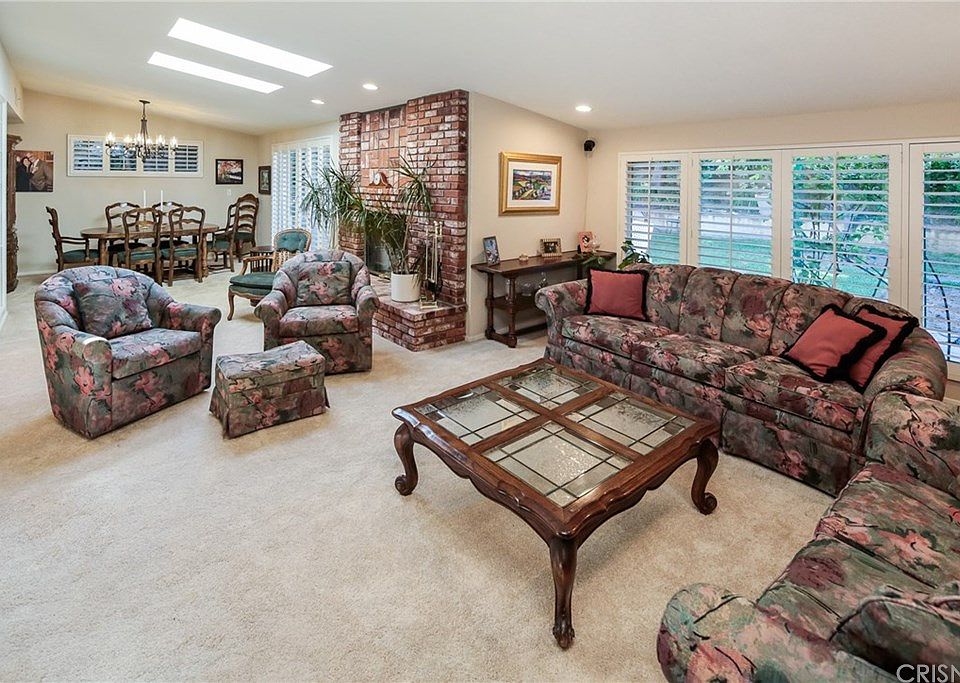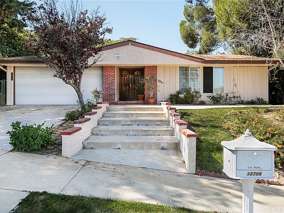 Double door entry with wood flooring leads to this spacious, 2,289 sq ft light and bright expanded 4 bedroom, 2.5 bath Granada Hills home featuring a large open living room with skylights, fireplace and plantation shutters. Separate dining area off the expansive living room. Large island kitchen with separate eating area, garden window, updated cabinets with some pullouts, recessed lighting and tile counters and floors. Large walk behind wet bar with access from the kitchen is perfect when throwing your holiday parties. The sumptuous master bedroom is adorned by a romantic brick fireplace, plantation shutters, beam ceiling, walk in cedar closet, recessed lighting and a huge sitting room. The master bedroom has a lovely view of the tranquil backyard. En-suite master bath with stall shower. 3 additional family bedrooms with plantation shutters. Large yard perfect for entertaining. Separate laundry room leads to the attached garage. This perfect family home is located by highly sought after Van Gogh Charter Elementary and Robert Frost Middle School.