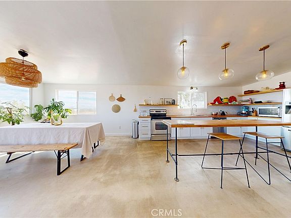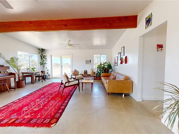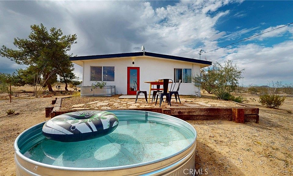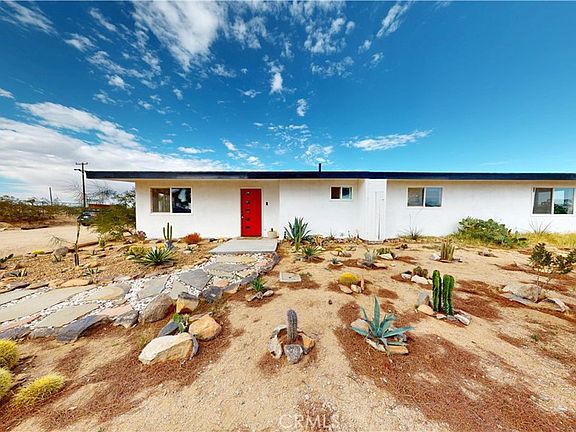 Landers at its finest. This beautiful home is the perfect desert getaway. 2 Bedrooms, 2 Bathrooms, and a roomy floorpan on 2.5 Acres. Step into the home on the new tile landing and notice the tons of natural light that fills the home. Outside the living room sliding glass door is a covered patio that is the perfect place to enjoy. Continuing through the home to the expansive kitchen you will see the concrete floors and wood accents of interior sliding doors, and wood countertops give the home a perfect modern desert feel. The kitchen with its large butcher block counter tops gives plenty of space for food preparation with natural light coming in through the window leading out to the expansive lot with beautiful desert views. The home is powered by an owned solar system that produces enough power for the entire home. Ductless air conditioning and heat provide comfort throughout the year. Spacious bedrooms allow for comfortable accommodations with the primary having a full on suite bathroom. Enjoy the outdoors with the beautiful cactus garden or cool off in the cowboy tub outside the dining area. Property has been rented as a short term rental in the past with significant earnings, can be purchased fully furnished with all appliances turn key. Make this home yours and call to set up a showing.
