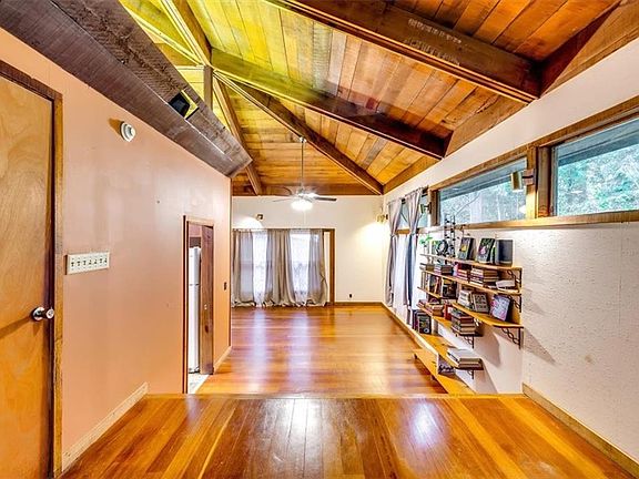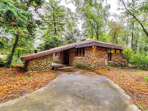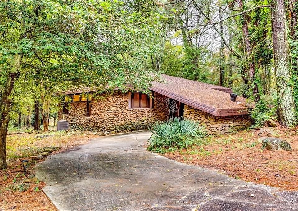 Discover this distinctive 2-bedroom, 1-bath stone home offering 1,512 square feet of character and craftsmanship in a peaceful wooded setting. Perfect for nature lovers and artists, this property combines rustic charm with modern comfort. The home features hand-laid stone walls, warm wood finishes, and vaulted ceilings with exposed beams. Natural light fills the interior through large windows, highlighting the open living areas and inviting atmosphere. The split-level design provides flexible space for living, working, or creative pursuits. A beautiful stone hallway and entryway make a striking first impression, while the surrounding trees provide privacy and a connection to nature. The property offers a rare opportunity to own a truly unique residence just minutes from downtown Conyers, local parks, and outdoor recreation.