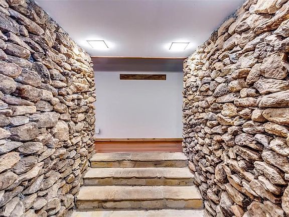Warm wood finishesHand-laid stone wallsNatural lightPeaceful wooded settingBeautiful stone hallwaySurrounding treesSplit-level design