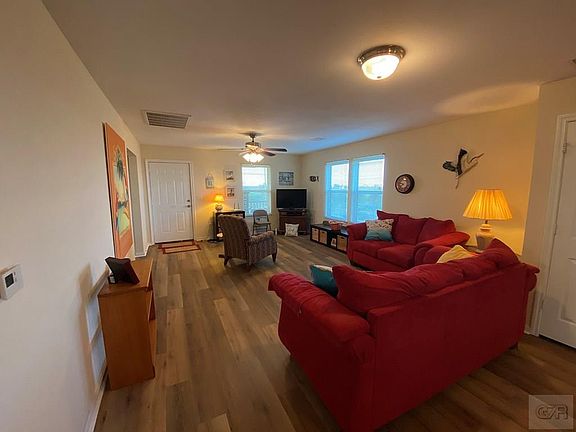 Panoramic views of E Galveston Bay and wetlands teeming with wildlife greet the owners of this house every day. You can also watch the barges for miles on the Intracoastal Waterway. The sun rises and sunsets are spectacular. In other words, one of the most relaxing getaways on Bolivar If you like a quiet nature resort-type area but would still love to be within a golf cart ride of the beach, you have found your home. This 3 bedroom. 2 bath, 1380 sq ft home was built in 2010. New wood-like laminate floors were installed in the living room kitchen area in March to welcome a new owner. More land with a slab is available for an additional cost. Great place to build a detached garage, gazebo or just for a little more elbow room. Call today to view.