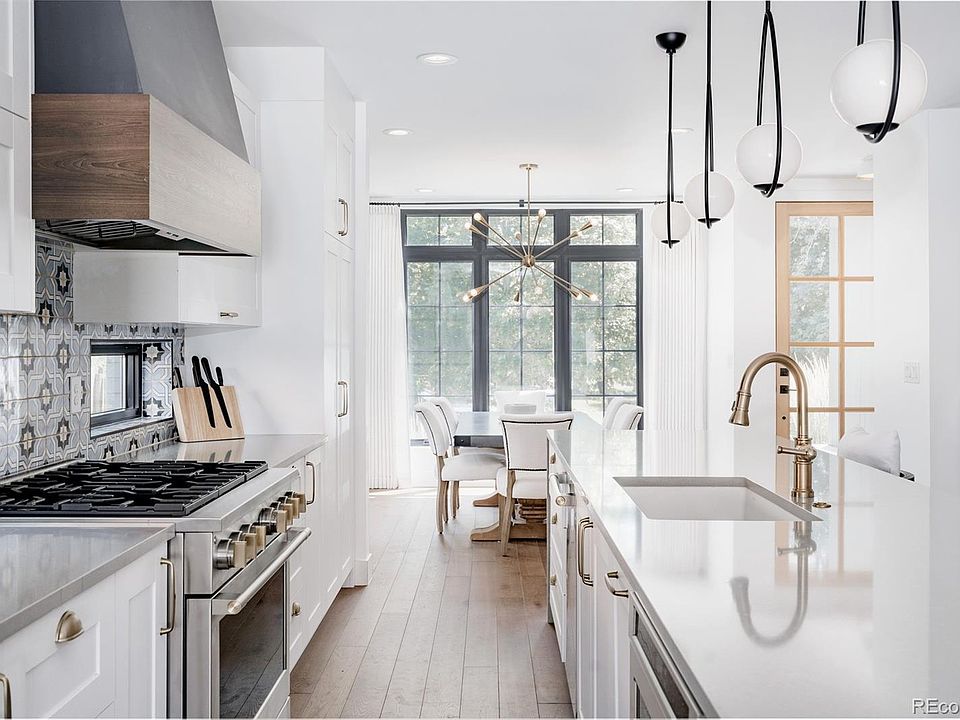 Welcome to your modern oasis in the heart of Congress Park - one of Denver’s most beloved and walkable neighborhoods. This stunning, design-forward duplex offers the perfect blend of luxury, functionality, and location. From the moment you step inside, you’ll feel the quality of craftsmanship and intentionality of the layout. The main floor welcomes you with high ceilings, natural light, and a seamless open-concept design. At the front of the home, a designated dining area makes hosting dinner parties effortless. The kitchen is a chef’s dream, outfitted with luxury stainless steel appliances, a large center island for gathering, pendant lighting, and abundant cabinetry. Just beyond, your living room is anchored by a statement fireplace and glass doors that open to a private backyard. Your detached two-car garage offers space for both vehicles and gear. Upstairs, retreat to your primary suite, a spacious walk-in closet, and a luxurious 5-piece en-suite bath. You’ll love the double vanities, designer fixtures, and the show-stopping shower and soaking tub combo. This level also includes a second bedroom with its own en-suite bath, as well as a laundry room perfectly positioned for ease. Designed for entertaining, the third level has a large flex space complete with a wet bar and outdoor entertaining area. A third bedroom and full bathroom provide privacy and comfort for guests or a remote work setup. Step out onto the private rooftop deck and take in the views. Need even more space? Head downstairs to the fully finished lower level, which offers versatile square footage for a home gym, rec room with another wet bar, and even an additional guest suite and full bathroom. All of this is wrapped in a modern exterior with clean lines and thoughtful landscaping. Located in one of Denver’s most central, connected neighborhoods — minutes from Cherry Creek, City Park, and Downtown — this home is the perfect combination of style, substance, and location.
