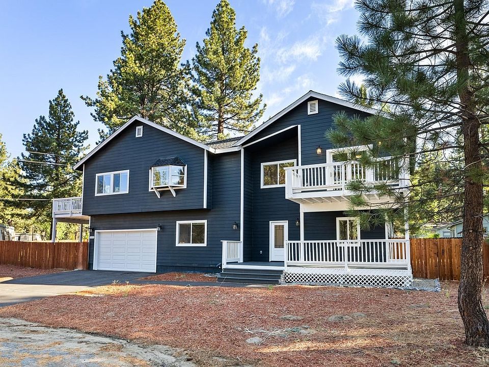 Welcome to Casa Azul, your fully furnished mountain retreat in the heart of South Lake Tahoe. This newly built, ultra-large 4-bedroom, 3-bathroom home is nestled among the pines and designed for ultimate relaxation. Two expansive decks invite you to unwind in the fresh air while soaking in the tranquil forest views. Inside, the thoughtfully appointed bedrooms feature a TV in each room, two king-sized beds, a plush queen bed, and a twin bed. The oversized garage provides ample storage for all your gear. The expansive living room is ideal for guests, with a soccer table and a dining table fit for 10 people! Ideally located just steps from the Bijou 9-hole golf course, and minutes from the beach, top-rated restaurants, coffee shops, Safeway, Whole Foods, and the world-class skiing and entertainment of Heavenly Village and the Mountain Gondola. Whether you're hitting the slopes or enjoying summer on the lake, Casa Azul is your home base for the ultimate Tahoe lifestyle!