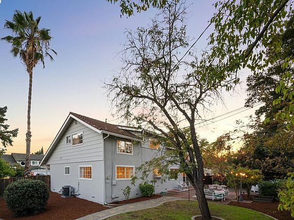 Light, airy, and spacious, this Mid-century 4+BD/2BA Concord home offers easy living near the beautiful Mount Diablo foothills. The 2091 SQFT home welcomes you with a newly landscaped Mediterranean garden anchored with mature trees and a towering California palm. The sunny living room invites you to relax in front of a picture window of the garden. Wonderful flow leads from the living room to the heart of the home - the connected dining room, kitchen, and den with a fireplace and sliding glass doors to the backyard. Enjoy preparing meals in the kitchen while family and friends unwind in the den. Surrounded by mature landscaping, the expansive backyard and patios provides plenty of room to dine al fresco, entertain, play, garden, or potentially add an ADU or create your own oasis. Back inside, the first floor is complete with a roomy office and a primary suite enjoying a backyard view and a stylish new split bathroom. Upstairs find three bright bedrooms and a full bathroom with a dual vanity. Other recent upgrades include new flooring and recessed lighting. The 2-car garage has storage galore, a sink, laundry area, and interior access. With BART down the road, your commute is easy. Nearby, enjoy top schools, Len Hester Park, & miles of trails on the Iron Horse Regional Trail.