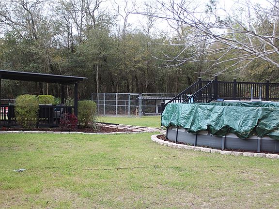 Outside you will find new landscaping, sprinkler system and a pool complete with decking around it. The outside patio is covered with a tin roof to enjoy on those rainy nights. There is also a nice outside kennel for your pets with heat and air!