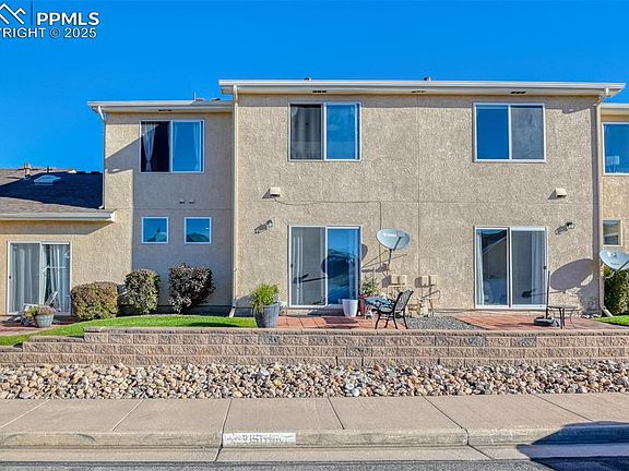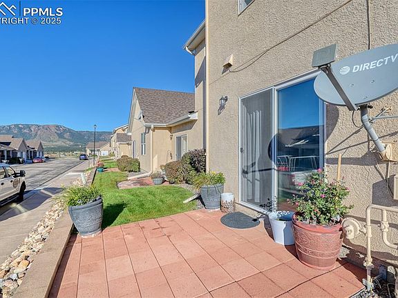 Looking to purchase your first home, downsizing, resizing, or seeking low-maintenance main-level living? This NEWLY renovated 1,782 sq. ft., 2 story townhome offers a spacious main level master bedroom with access to back patio, 2 spacious upstairs bedrooms, PLUS a versatile bonus room, a NEW beautifully crafted custom electric fireplace with built-in storage. You'll love the abundance of storage throughout, making it easy to keep everything organized! The a one-car garage comfortably accommodates a small SUV, plus the driveway offers additional parking space long enough for a truck, plus street parking for one more vehicle right in front of the house. 20’ vaulted ceiling with plenty of natural light, gorgeous laminated wood floors throughout the main living area, stairs, and bedrooms, offering both beauty and durability. The kitchen shines with NEW quartz countertops, a beautiful NEW blue glass backsplash, a NEW deep stainless steel sink, and a spacious pantry—with plenty of prep space and NEW range with double ovens for cooking family meals! The spa-like bathrooms, feature NEW luxurious tile floors, NEW walk-in showers with rain shower heads, dual flush toilets, and new bathroom fans. Enjoy breathtaking views of Pikes Peak from the upstairs bedrooms and unobstructed view of Mount Herman from the master bedroom patio! Furnace was recently serviced and vents were cleaned! Located in a desirable Monument, D38 school district, with easy access to I-25. It’s 10 minutes to Air Force Academy, 20 minutes to Colorado Springs, 1 hour to Denver!