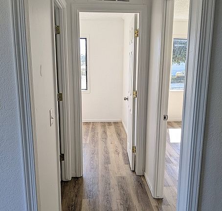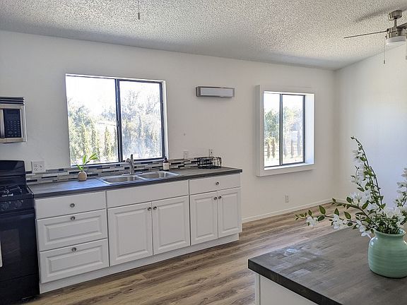 Beautifully renovated mobile home on gated 2 1/2 acre property with an abundance of natural light, vinyl plank flooring throughout, vaulted ceilings, kitchen has newer cabinets, stained butcher block countertops, and glass tile backsplash, newer bathroom vanities and tub/shower in hall bath, laundry room with propane hookup for dryer, parking pad, large yard (not fenced), water and electricity included. Home is on septic and uses propane. No pets. One year lease. No smoking. Shown by appointment. *Two other residential units are on the same property.