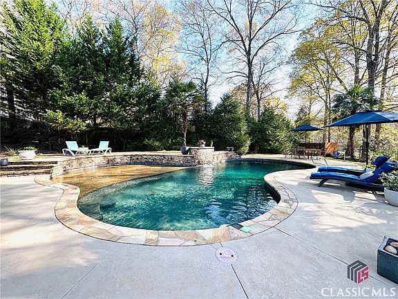 Stunning backyard oasis in beautiful Summit Grove subdivision, Oconee County. Enjoy this peaceful 1.74 acre lot, whether you're on the rocking chair front porch, or the covered patio looking out to the stone courtyard with outdoor fireplace. Spend your weekends and evenings relaxing by the gunite salt water heated pool. This lovely home has a large primary bedroom on the main level, double walk in closets, with french doors that open into a private screened in porch for you to enjoy. The primary bathroom features a new full length soaking tub and walk in shower. The updated kitchen has been many upgrades like beautiful quartz countertops, tile backsplash, gas stove with pot filler faucet, and a walk in butler pantry. Off the kitchen is space room for a dinette and also features a keeping room with fireplace. The home has a newly renovated, oversized great room with built ins and gas fireplace. On the main level is a beautiful sunroom that can double as an office. Upstairs has an additional 3 bedrooms, 2 full renovated baths. This property has a inactive drilled well that could be used with a new pump for irrigation. Other features include walk up, above garage storage room. Tankless gas water heater, security system, home vacuum system, fenced backyard. Seller holds active Georgia Real Estate License