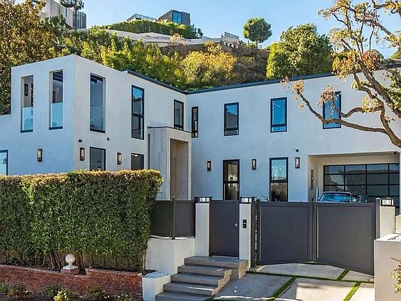 Welcome to this exquisite gated residence located just above the Sunset Strip, where luxury and design blend seamlessly to create a stunning living experience. Natural wide plank oak floors flow throughout the open-concept layout, setting the tone for the home's warm and inviting aesthetic. The massive kitchen is a chef's dream, featuring top-of-the-line Miele appliances, a custom zinc-finished hood, elegant marble countertops, and a striking custom brown rounded island, perfect for those who love to entertain. The home's attention to detail continues with a custom chevron floor landing that highlights the staircase, complemented by a vintage-inspired 1940s iron railing, adding a timeless touch to the modern elegance of the space. The primary suite is a serene escape, featuring two large walk-in closets, a cozy seating area, and its own private staircase leading directly to the pool and spa for seamless indoor-outdoor living. Each bedroom boasts its own private patio, creating personal sanctuaries for every member of the household. Outside you will find a large pool and spa complemented by an alfresco dining area beneath a stunning automatic pergola. The outdoor fire pit and spacious patios provide additional areas for lounging and gathering. Thoughtfully designed lighting enhances the space, creating a captivating ambiance for evening gatherings. The expansive, private backyard offers ample room for relaxation, while one of the balconies reveals sweeping city views, adding to the allure of this exceptional outdoor oasis. Additional features include a gated driveway that accommodates up to five cars, a two-car garage, and the convenience of being minutes away from the iconic Sunset Plaza.