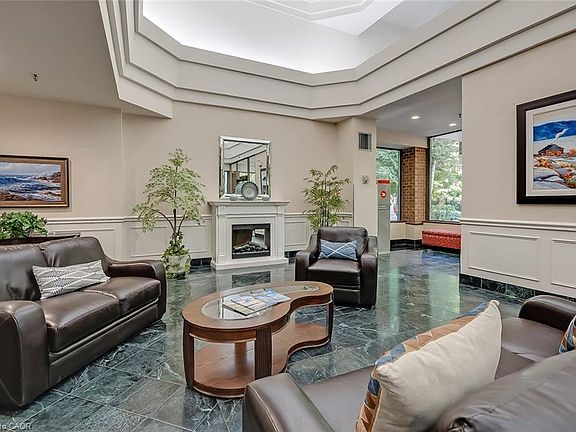 2 bedroom + den penthouse level suite at the highly sought-after 'Sheridan Club Condominiums' in Clarkson Village! 1,392 sq.ft. of bright and open living space with absolutely stunning views of the Toronto skyline and Lake Ontario! Steps to the Clarkson GO Station, QEW, the lake, Rattray Marsh, schools, parks, restaurants and shopping! Beautifully updated kitchen with stainless steel appliances, granite and pot lighting opens to a spacious dining room with tray ceiling and a spectacular living room highlighted by the abundance of natural light and breathtaking views. Primary bedroom with walk-in closet, 3-piece ensuite and access to den plus an additional second bedroom with access to a 4-piece bathroom across the hall. Engineered hardwood floors, crown moulding and in-suite laundry. Resort-like building amenities include an indoor pool, gym, sauna, library, party room, games room, workshop, outdoor seating/BBQ area and visitor parking. Condo fee includes cable and internet as well as a membership to the exclusive 'Walden Club' directly across the street, which provides access to an outdoor pool, tennis, squash and pickleball courts, clubhouse and fitness centre! Two side-by-side underground parking spaces and 1 storage locker.