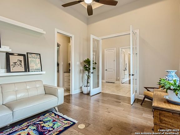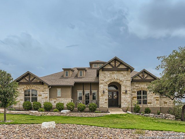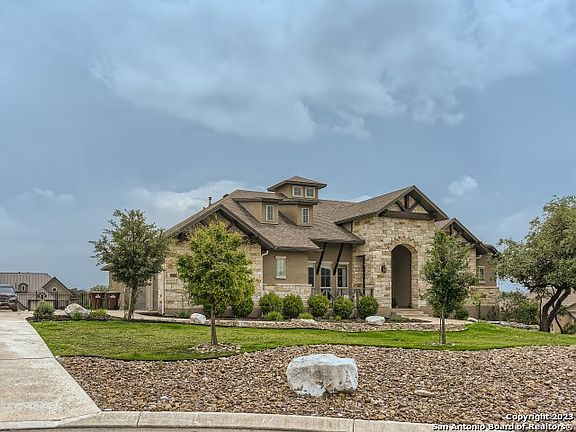 Elegant Hill Country Retreat with Stunning Views of Government Canyon! Discover this exquisite Hill Country home, perfectly situated on a spacious corner cul-de-sac lot with breathtaking views of Government Canyon. Offering a blend of luxury and comfort, this home features an open-concept floor plan with soaring ceilings that create a warm and inviting atmosphere. Upon entering, you'll find two versatile office spaces just off the entryway, ideal for working from home, a study, or a playroom. The grand hallway showcases a high barrel ceiling, leading into the expansive great room with a stunning windmill ceiling fan, an electric log fireplace with remote, and an abundance of natural light. The gourmet kitchen is a chef's dream, featuring custom upgraded cabinetry, a large walk-in pantry, a bar nook, and two dining areas-perfect for hosting family and friends. The coffered ceiling adds character to the cozy seating area, making it an ideal space for gathering. This home offers three generously sized bedrooms, including a private guest suite with an en-suite bath and two additional bedrooms sharing a beautifully designed hall bath. Whether for kids, guests, or a mother-in-law suite, this layout provides flexibility for every lifestyle. The luxurious primary suite is a true retreat, boasting double tray ceilings, oversized windows, and custom blackout draperies for the ultimate in relaxation. The spa-like primary bath features dual sinks, a huge glass-enclosed shower, and a spa tub, offering the perfect place to unwind. Additional highlights include an oversized two-car garage with an adjoining one-car garage, perfect for extra storage, a workshop, or additional vehicle space. The low-maintenance front yard is beautifully landscaped, while the sprawling backyard (over half an acre) is perfect for entertaining, adding a pool, or simply enjoying the peaceful Hill Country surroundings. Located in highly desirable Helotes, Texas, this home is just minutes from shopping, dining, and entertainment at La Cantera, The Rim, and Old Town Helotes. Plus, it's a short 30-minute drive to downtown San Antonio, the iconic River Walk, and The Alamo. Enjoy serene Hill Country living without sacrificing convenience-schedule your private tour today!