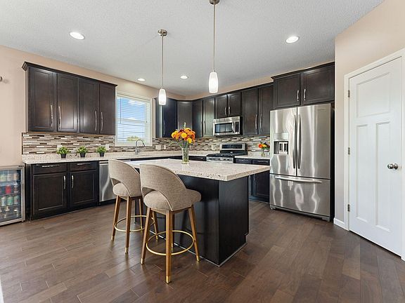 Beautiful 2-story home in the Dan Patch Trail Neighborhood that backs up to a pond for peaceful views (no homes directly behind!) 4-bedroom, 4-bath featuring a functional open layout filled with natural light from large, sunlit windows. The stylish kitchen offers a spacious center island, granite countertops, custom tile backsplash, stainless steel appliances, and a convenient coffee bar. Upstairs, you’ll find 3 generous bedrooms including a lovely primary suite, a convenient Jack-and-Jill bath, and a large laundry room. The finished walkout lower level adds even more living space—a family room complete with a cozy fireplace, perfect for movie nights, games, or entertaining and a 4th bedroom. Enjoy the peaceful outdoors in the private fully fenced backyard featuring a maintenance-free deck, a fire pit area, and tranquil pond views. Great location..a short walk from downtown Savage and the scenic trails of Rudy Kraemer Nature Preserve. Updates include new carpet, fireplace, and cabinets in lower level (2023), new dishwasher and dryer (2023), fence & new water heater (2021).