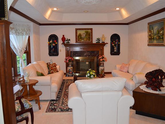 Welcome Home! This two-story custom-built Home has it all! Entry Foyer with marble floors, Both Living and Dining Rooms have bay windows. The family room has a two-story stone fireplace with several skylights. You're sure to enjoy entertaining in your Kitchen. Primary Bedroom is sure to accommodate all your furnishing. Primary bathroom with a dressing area, tons of closet space, and three additional Bedrooms. Main floor Laundry, walk-in pantry. Deck overlooks a private wooded lot. Call for your appt. today! All measurements are approx. and not deemed reliable. Call for an appointment today!