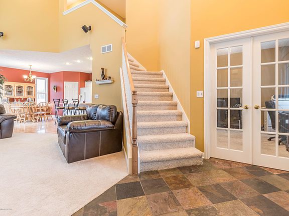 Don't miss this little ''peace'' of country! This like new 2004 one owner property sits on just over 2 acres, but is so convenient to everything. You will be greeted by a blacktop drive curving around a pond and the beautifully maintained land. This custom built home offers so may amenities, such as a first floor master suite, open concept living, large laundry room, flex room office/formal dining with a butlers pantry! There are 2 additional spacious bedrooms upstairs with a shared bath and a study/reading nook. There is a possibility for a 4th bedroom in the phenomenal lower level! Are you a sports enthusiast? You will be awed by the multiple built in TV's, sound system and space for entertaining. There is a half bath that is roughed for a shower. This home runs on geothermal heat and two water heaters. The 3-car garage is heated and insulated. The Trex deck is huge and can host all sorts of gatherings. There is an invisible fence, irrigation system and don't forget that pond with seasonal fountain! Truly a turnkey property you will love calling "home"!
