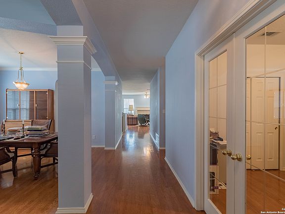 **Open House 3/2 12-3:00** Spacious single story home nestled on a lovely cul-de-sac in the gated community of Cedar Springs of Helotes. This charming 4 bedroom home (4th bedroom currently used as an office with glass doors) has an open floor plan, two living areas, large master bedroom with an equally large master closet. Highlights include a large kitchen featuring an island, breakfast bar, built in appliances, solid surface counters and it is open to the family room so you can still enjoy the love and laughter of family and friends. The cozy wood burning fireplace and over 1/4 AC greenbelt lot is an additional bonus. Located in NISD and close to 1604 for convenient travel throughout the city. Easy access to the Texas Hill Country or shopping and dining @ LaCantera & The Rim!