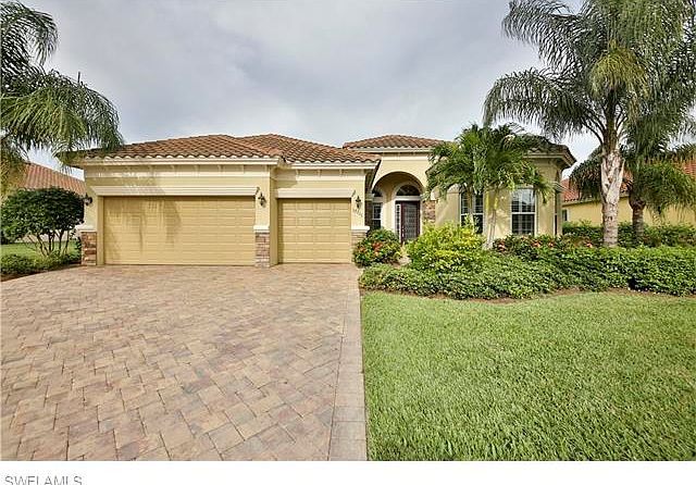 This beautiful home is one of Pulte's most popular floor plans in Somerset. Relax and enjoy the fantastic view and privacy of the lake, golf course and preserve from your extended lanai. Ample room for family and friends in this 2500+sqft. open floor plan under air. Three bedrooms with walk in closets, three full baths and den. Plantation shutters and fans throughout the house. Plenty of windows and sliding doors all along the back of this home to enjoy the view from the outside while being indoors. Plan your gourmet dinner from your gourmet kitchen. Upgraded kitchen with 42" cabinets, granite counter tops and backsplash, appliances and 12' island. Large Dinette surrounded by windows and a sliding glass door. This home has much to offer in location and upgrade options: Outdoor kitchen set up, central vacuum, 4ft extended garage with attic flooring and stone front elevation. If you want to enjoy resort living the Plantation is where you want to live. A gated golf club community with two club houses, fitness center, resort style pool and spa, 6 tennis courts, billiard room pickle ball and much more. Close to shopping, restaurants, beaches and SWF airport.
