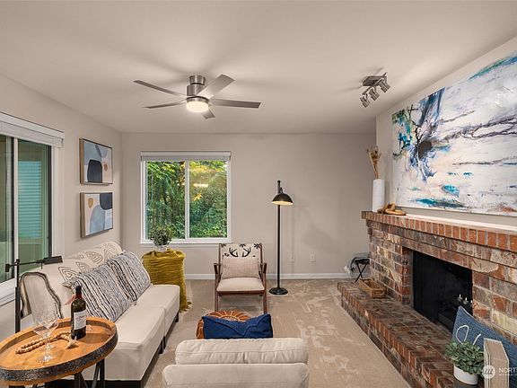 Welcome home! This stylish corner condo is perfect for modern living, featuring 2 bedrooms and 2 baths. Say goodbye to popcorn ceilings and hello to cozy evenings by the wood-burning fireplace with its stunning oversized mantel and hearth. The kitchen offers stainless steel appliances and solid hickory cabinets, plus a handy reach-through counter to the dining room. The primary boasts double closets, an ensuite, and a water closet. Don’t miss the private deck overlooking serene green space —bring your book & coffee! Located near all the excitement of Kirkland: The Village at Totem Lake, Evergreen Medical Center, I-405 (new 132nd exit), Eastrail, 132nd Square Park, Woodinville Wine country. In LWSD. This condo offers convenience and comfort.