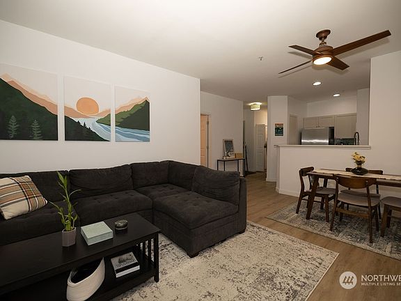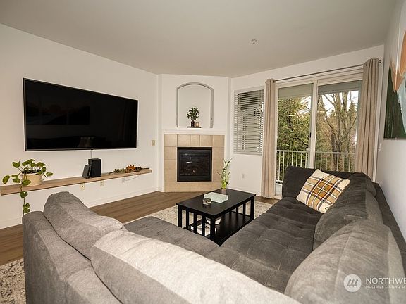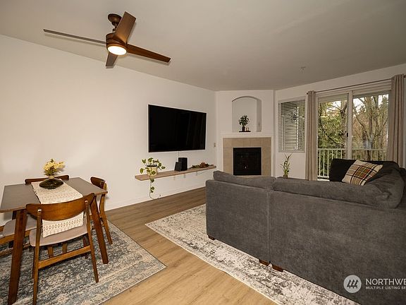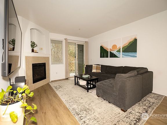 Beautifully updated 2-bed, 1.75-bath condo with a private garage and a tranquil balcony overlooking protected woodlands and wetlands. The kitchen shines with gorgeous quartz countertops, stainless steel appliances, featuring a Fisher & Paykel refrigerator, modern glass tile backsplash, and sleek new luxury plank flooring. High ceilings throughout enhance the open feel. The primary suite offers greenbelt views, a walk-in closet, and private bath, while the second bedroom and full bath are on the opposite side near the laundry (w/d included). Perfect for remote work with Xfinity Internet. Well-maintained HOA includes a clubhouse and sports court, plus strong reserves. Investors welcome—no rental cap! Quiet location,minutes from I-5 and I-405.