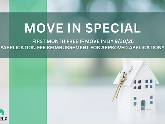 - Special offer! FIRST MONTH FREE IF MOVE IN BY 9/30/25 - APPLICATION FEE REIMBURSEMENT ON APRROVED APPLICATION