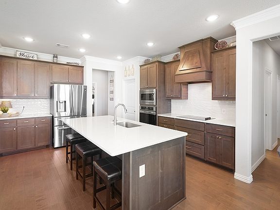 Stunning 4 bed 3 full bath home with in home office and Storage Shed on 1 acre zoned for Krum ISD!As you step into this home you are greeted wood like floor that cascades throughout your dining room,office,living room and kitchen giving a seamless look while the natural light floods in from your windows!Kitchen is adored with Knotty Alder cabinets,quarts counter tops,SS appliances with a working island providing additional bar seating while your full size breakfast area hosts a full size table that is perfect for entertaining!Livingroom is lined with large windows over looking your full acre of land while your stone fireplace is the perfect anchor of elegance.Split design has your 3 nice sized bedrooms with 2 full baths all tucked behind the kitchen,leaving your master suite nestled behind the Livingroom with oversized bedroom,walk in closet,walk in tiled shower,soaking tub and double sinks!Outside you have plenty of room to run and play or take your day in sitting on your back porch!