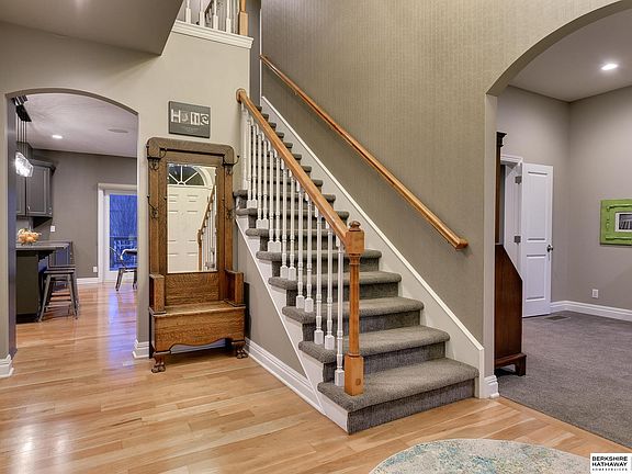 You will fall in love with this beautiful, one owner custom-built home conveniently located in the heart of Omaha! This spacious 2 Story home features an open floor plan and a remodeled basement (complete with a rock climbing wall!) At the center of this home, the kitchen — with an adjoining dining room and surprisingly large walk-in pantry — make it ideal for gatherings and celebrations. In the recently expanded 2nd level, you will find an expansive primary bedroom, spa like primary bath and a walk-in closet. The upstairs comes complete with 5 full sized bedrooms, spacious walk-in closets and two recently remodeled bathrooms. Additionally, there is a well-placed laundry room with a hanging rack and room for two stackable washer/dryer units. On the main floor, you will also find an entertaining room, a formal dining room and the 6th bedroom. This home also has an attached oversized 3 car garage, complete with well-placed trench drains, epoxy coated floors and tool space.