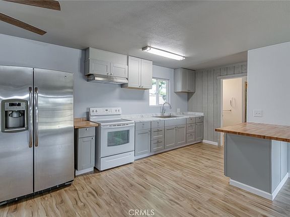 Kitchenette area features countertop, breakfast bar, pantry, stainless steel sink, refrigerator, electric range, disposal. Dual pane windows through out.