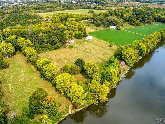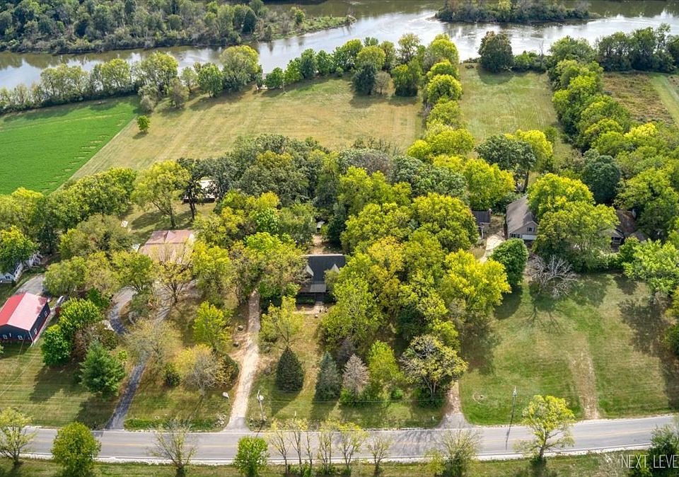 This custom-built log home is a stunning retreat, nestled on a sprawling 4.84-acre lot with 243 feet of private river frontage. This is the first time this exceptional property has been on the market and is a diamond in the rough, waiting for a buyer with a vision to bring its original beauty back to life. The home's design evokes the feel of a Northwoods cabin, with a dramatic vaulted ceiling and floor-to-ceiling windows that create an open, airy atmosphere. Kayaking, canoeing and swimming right off your own property with boat launch. With 3 bedrooms (2 on main floor) including a master suite with loft on the second floor, there's plenty of room for everyone. Vaulted ceiling and floor to ceiling windows gives the home an open floor plan with the feel of being in the Northwoods. The grounds are equally impressive. The property is surrounded by mature trees, and the acreage leading to the river is flat and usable, making it the ideal spot for outdoor celebrations and activities. You can enjoy kayaking, canoeing, and swimming right from your own yard. The property also includes a 36'X24' Morton pole barn with large loft and two other outbuildings, giving you a total of three versatile spaces for storage, a workshop, or hobbies. The full, walk-out basement with a roughed-in full bath offers even more potential. This is an estate and sold as-is.