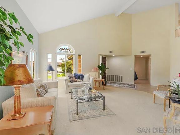 Nestled in Poway's sought after Rancho Arbolitos neighborhood, this stunning home sits on a spacious quarter acre lot, complete with OWNED solar 5.12KW. Full bed and bath located on the main level. Beautifully remodeled and upgraded kitchen w/SS appliances, stone & glass backsplashes, gorgeous remodeled primary bath and flooring, additional bathrooms have been upgraded as well. newer lift/re-lay roof, LED lighting throughout. Enjoy the open and airy floor plan with large vaulted ceilings, perfect for both everyday living and entertaining. Newer vinyl windows in most of home, excellent location on a cul-de-sac street near top rated schools and amenities, this property offers an ideal blend of luxury and convenience for modern living..
