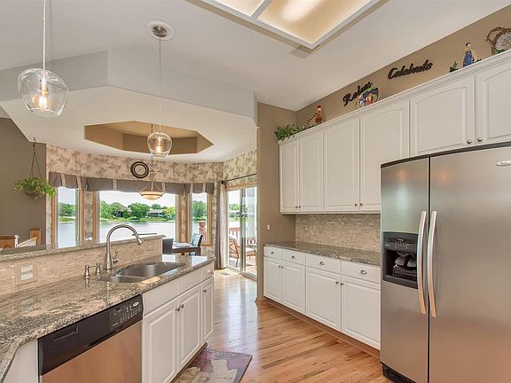 Luxury living on lake lot. This 5 bedroom, 3 bath home is up to date and move in ready. With a beautiful view on the lake and a quiet cul-de-sac setting, you don't want to miss out on this property. An open floor plan with over 2000 sq. ft. of main floor living offers everything a buyer could hope for with a gourmet kitchen complete with stainless steel appliances and granite counter tops, large great room with a fireplace, breakfast nook with a scenic outlook over the lake and formal dining, this home has it all. Downstairs is a beautiful family room complete with a step behind wet bar, 2 more bedrooms with one being a flex room for an optional game room or office, and 2 storage rooms. This home has been well maintained and includes new windows with a transferable warranty.