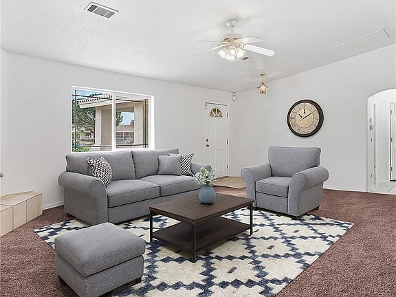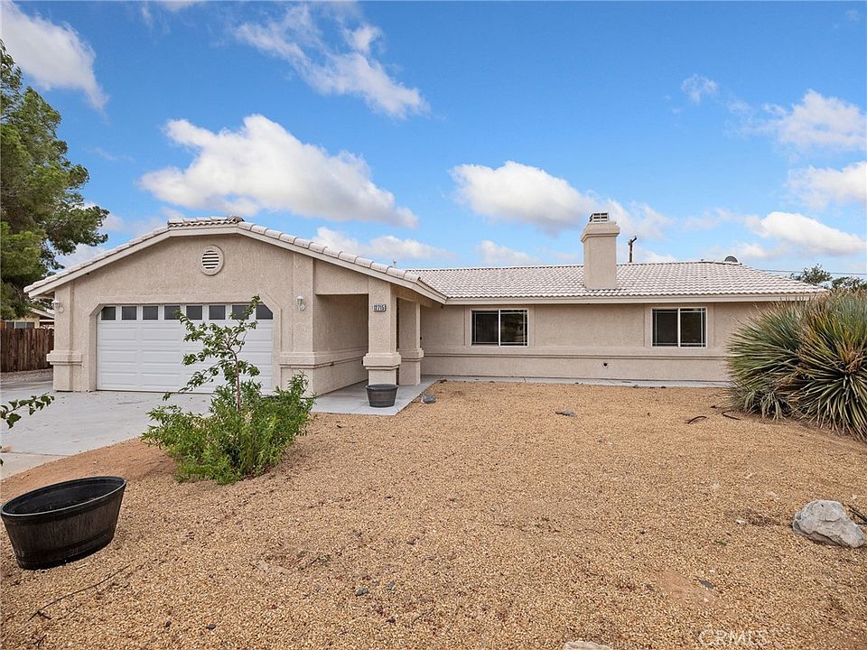 Fabulous & Freshly updated and move-in ready! This Apple Valley home features brand new carpet and paint throughout, creating a bright and inviting interior. Enjoy the fully enclosed patio for extra living space and year-round use. The property is completely fenced and landscaped with low-maintenance rock scape plus mature fruit trees. A large 4-car detached garage in the rear yard offers plenty of parking, storage, or workshop potential. Conveniently located near schools, shopping, and services, this home is ready for its new owner.