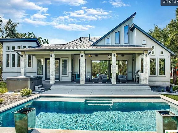 This stunning villa, comprising three buildings with a total of eight bedrooms, is nestled in the heart of Austin's brewery district, adjacent to Jester King. It offers an ideal setting for a group getaway, accommodating up to 30 guests. The villa boasts an amazing pool, hot tub, and a variety of games including disc golf, ping pong, bumper pool, air hockey, two arcades, and a pinball machine. Situated on 2.5 secluded acres, it provides all the privacy you could desire.