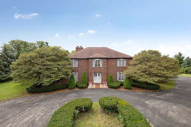 PALATIAL ESTATE ON 5 ACRES. PREVIOUSLY OWNED AND CUSTOM BUILT BY THE PRESIDENT OF AMERICAN CAN. TREE LINED DRIVE LEADS YOU TO THIS 5 BEDROOM GEORGIAN WITH CIRCULAR DRIVE AND 2 CAR ATTACHED GARAGE. BE GREETED BY A GRAND FOYER WITH ROUNDED STAIRCASE AND BUILT IN DISPLAYS. VERY SPACIOUS LIVING ROOM HAS SEE THROUGH STONE FIREPLACE TO THE OFFICE AREA. FLOW OF LAYOUT IS TREMENDOUS WITH AN EAT-IN KITCHEN HAVING LOTS OF GRANITE COUNTERS OVERLOOKING THE BACKYARD AND ENTER INTO THE FAMILY ROOM. MUD ROOM OFF GARAGE AND SEPARATE ENTRY GIVES WONDERFUL POSSIBILITY TO THE HORSE POTENTIAL PROPERTY. UPSTAIRS IS A HUGE MASTER SUITE WHERE A FIREPLACE SEPARATES THE SITTING AREA, THERE'S A SAUNA ROOM AND 2 WALK-IN CLOSETS ALONG WITH 2 FULL BATHS. FINISHED BASEMENT ACCOMMODATES A 2ND KITCHEN, JR MASTER, WALK-IN CLOSET AND 2 1/2 BATHS ALLOWING FOR RELATED LIVING. CENTRAL VAC, WHOLE HOUSE FAN, NEW DRIVEWAY 5" THICK ASPHALT AND ROOF OF 10YRS. THIS HOME WILL MAKE YOUR DAY AND EVERY ONE AFTER THAT.