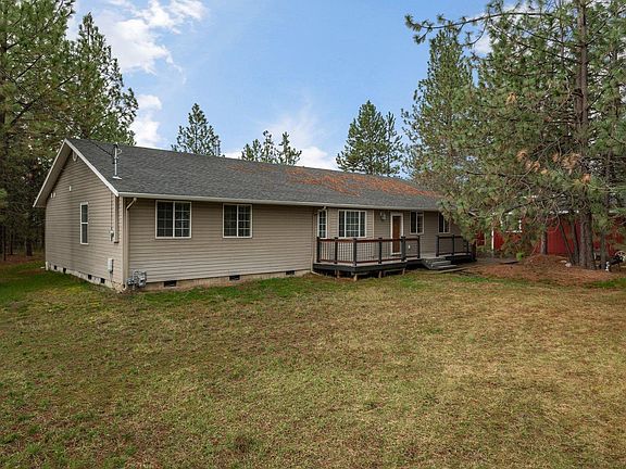 Don't miss this rare opportunity! This charming rancher sits on a serene 1.4 acre lot surrounded by trees, within the desirable Mead School District. The spacious kitchen boasts stunning maple cabinetry, skylights, a large center island with granite countertops, and ample storage. It’s fully equipped with newer appliances, a farm sink, and two ovens. The open-concept design features an oversized living room with a gas fireplace and large windows that bring in natural light and offer beautiful views of the outdoors. The oversized primary suite includes a large walk-in closet and an en-suite bathroom with a jetted tub and separate shower. A newer deck, conveniently located just off the kitchen, is perfect for any outdoor gatherings. The 48x30 shop is fully finished with a wood-burning stove and offers four bays with plenty of workspace. You also have a 36x24 carport with 15 foot ceilings for your RV or additional toys. There are two storage sheds and one of those could easily be converted into a guest house.